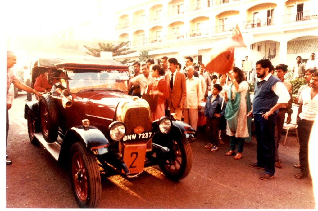 Throwback – This is a picture of Sportscraft’s very first event – The Vintage Car Rally, organised in collaboration with IARC, held in Lonavala, circa 1984. Mr. Karani can be seen at the flagoff.